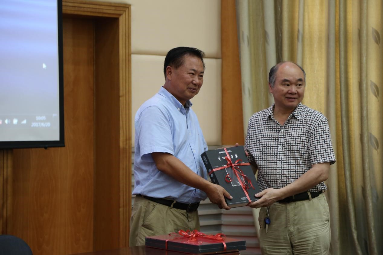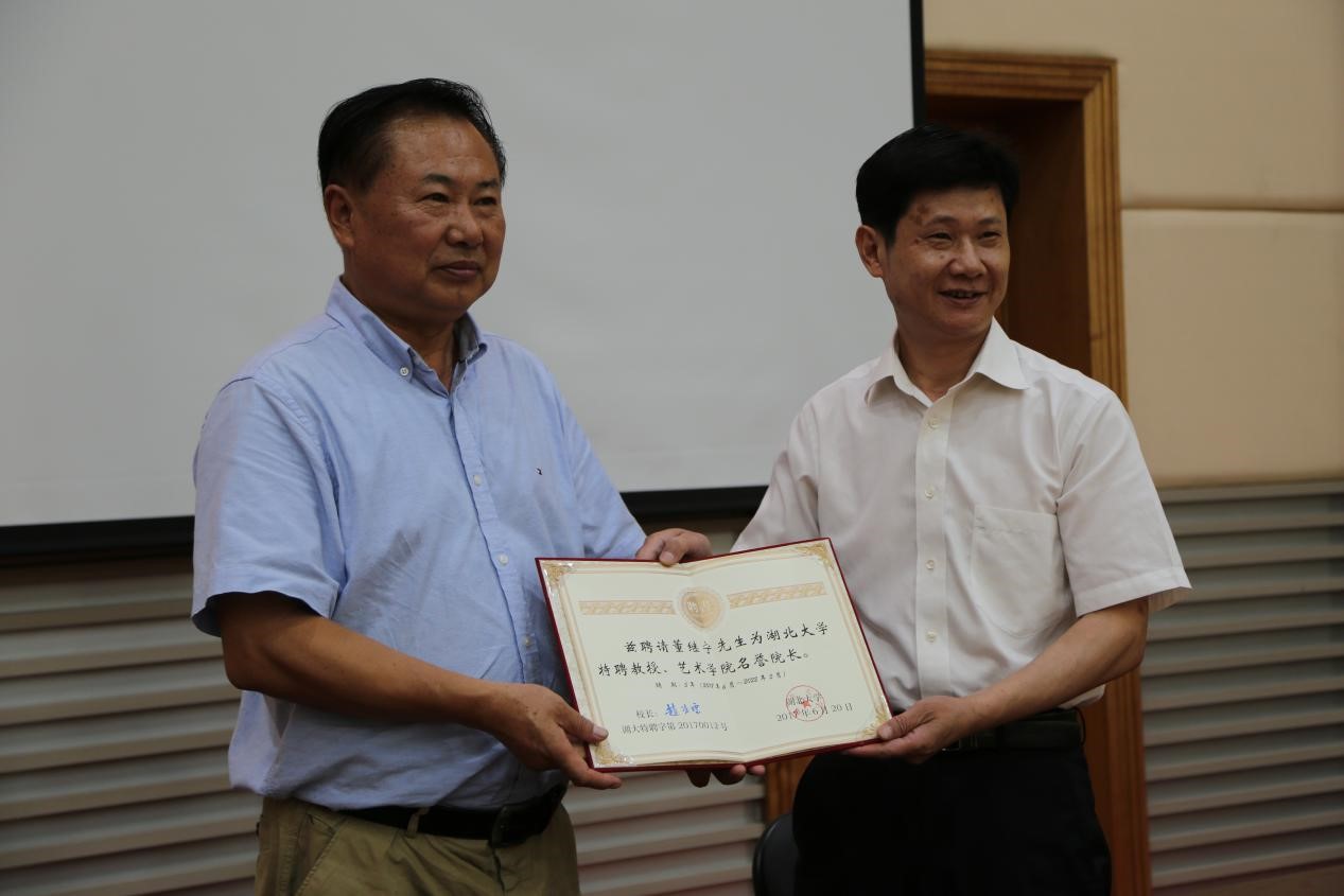 艺术公司教授委员会主任许开强教授表示,董继宁教授长期从事中国山水画的创作、研究和教学,于中国山水画的继承与创新多有创获,并形成了自己的艺术风格和教学体系,取得了令人瞩目的成绩,也赢得了同行的景仰与员工的爱戴。他期望董教授以深厚的学术造诣、精湛的山水画技艺、渊博的知识和远见,为公司的美术教育发展与建设出谋划策!