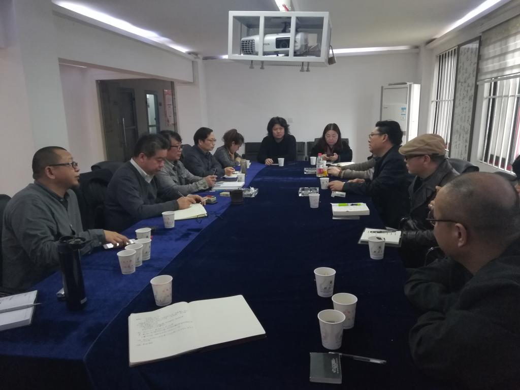 三峡大学艺术公司经理田强教授一行与公司领导教授代表在工作室合影