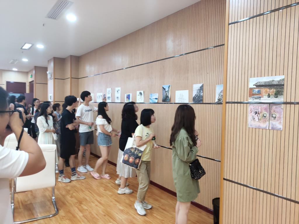 考察结束后,7月5日上午9点,在黄石港区公共就业和人才服务局、鄂东人力资源服务产业园、湖北梓和人力资源有限公司的组织下与公司师生开展了william威廉英国官网艺术公司老员工黄石实训实践活动总结大会。大会上黄石资深媒体人徐燕玲老师通过图片、文字和视频的方式从各个角度再一次的向大家介绍了黄石,让师生们对黄石的印象更加深刻。之后,胡仁娇和郝梁栋同学作为员工代表也在会上发言,讲述了他们在这几天的活动中的所思所感,引起了同学们的共鸣。最后,同学们将精心创作的速写、水彩、设计图等约20幅作品在鄂东人力资源服务产业园做了展示和交流,大会取得圆满成功。