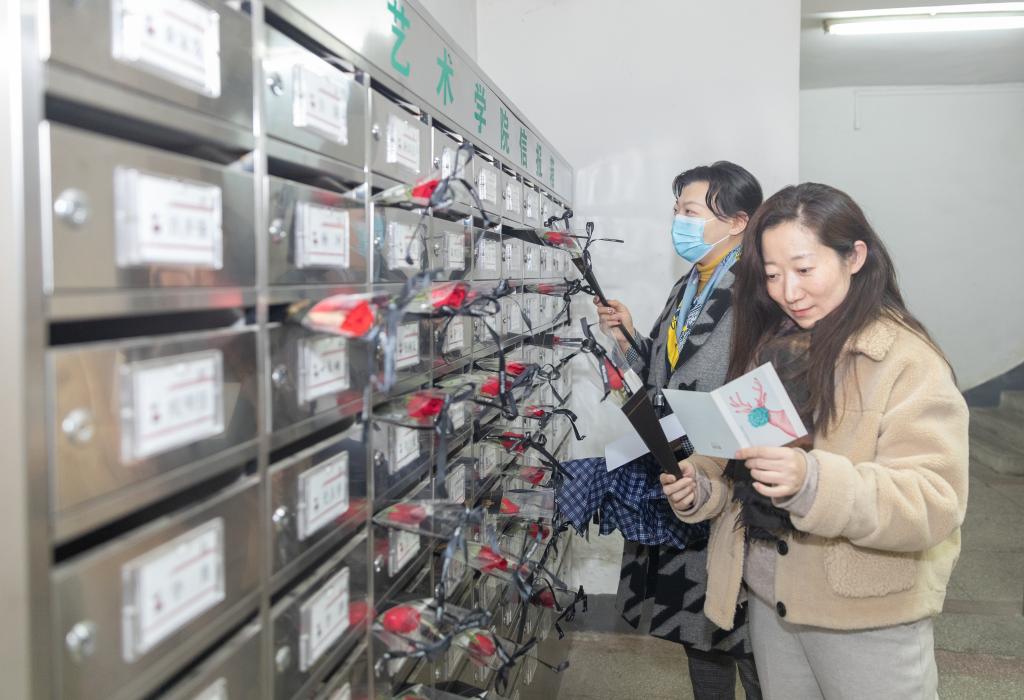 女教师们查收玫瑰与贺卡 向正鹏摄