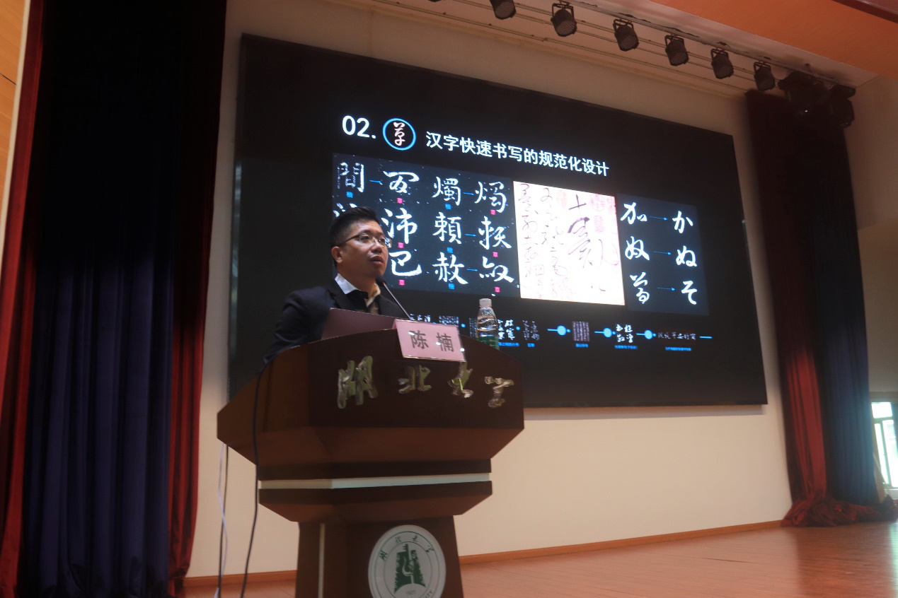 讲座过程中陈楠教授向艺术公司师生展示了自己关于汉字的部分设计成果—-汉字文创设计、汉字品牌设计、甲骨文表情包、动画短片等等,一件件精彩的作品打动了在座的全体师生。陈楠教授表示希望更多的年轻人能够热爱汉字设计,热爱关于甲骨文的研究,推广中国传统文化,为数字化时代添加中国传统文化鲜活的生命。