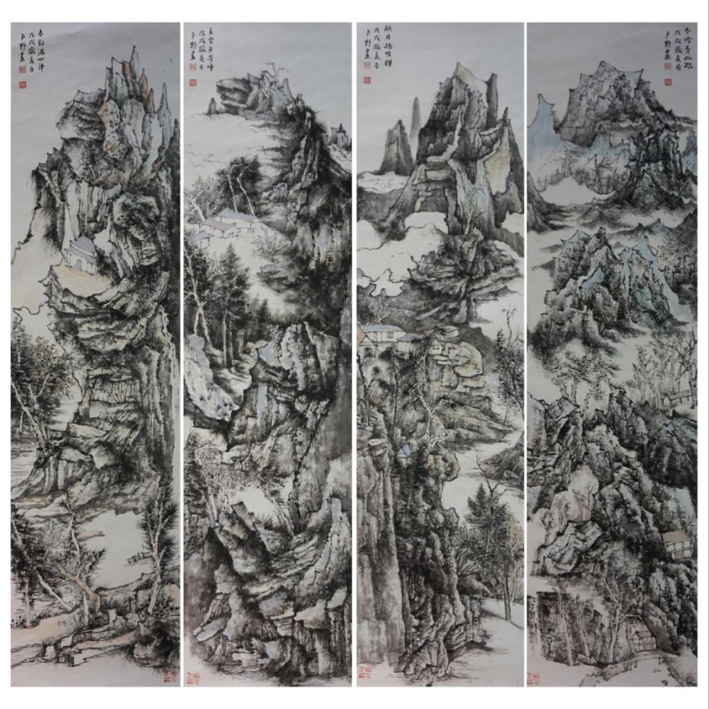 同时公司在校研究生卢野也以青年画家的身份,作品参展此次展览。对于此次展览的主题卢野女士则以自己的方式在作品中表达了自己独到的理解。在她看来“境”、“象”是构成中国艺术的基本元素。千百年来,不同时期和地域的中国艺术家对“境”、“象”、“韵”的不同理解和实践,形成了各自不同的风格和面貌。她以春夏秋冬四条屏作品来表达她心中的山水,通过中国的笔墨纸砚传达出心中的中国山水,将这种特有的笔墨意味展示给德国乃至欧洲的朋友们,也将中国故事讲给他们听,进行艺术交流与沟通。