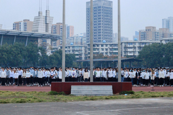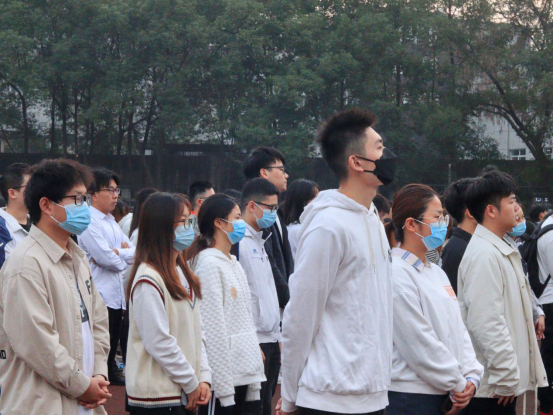 升旗仪式最后,全体师生合唱《我和我的祖国》,激昂的歌声,意气风发的姿态,为祖国献礼,以青春之心共创美好佳绩。
