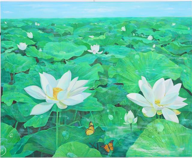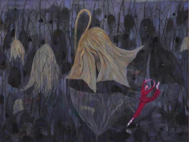 《荷花系列》是李碧红教授早期创作的重要题材,从原有蓬勃生机的形态,丰富为各个生长时期的不同形态,例如对花苞、盛开、花落、枯萎、残荷等各种类型的表达,通过荷的生长规律来象征人生的不同阶段。去年疫情期间创作的《荷下舞》系列作品,则表达了全国人民团结一心、共克时艰的主旋律。