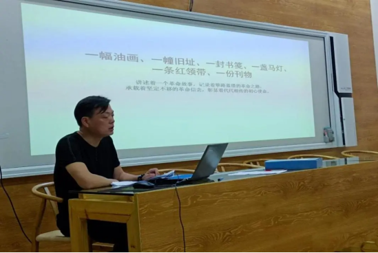支部书记刘卷老师讲题为《红色革命故事:“敢为人先、百折不挠”——“南昌起义”与“八一精神”》党课。刘卷书记以一幅油画、一幢旧址、一封书笺、一盏马灯、一条红领带、一份刊物为主线讲述“南昌起义”的过程,诠释筚路蓝缕的革命之路,“南昌起义”承载着坚定不移的革命信念,及其彰显着代代相传的初心使命。并强调“南昌起义”与“八一精神”的永恒价值,及革命先驱敢为人先、百折不挠,勇于探索、拼搏的精神。勉励党员们通过学习一个个鲜活的革命故事,牢记党的信念,深谙学习党史的重要意义,在今后的工作学习中勇于克服困难,不畏艰险,将红色革命精神发扬光大。