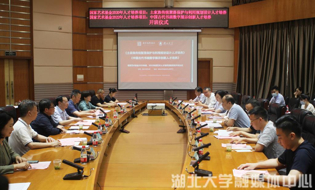 6月12日上午,由中国福利彩票和中国体育彩票、国家艺术基金资助的2020年度、2022年度艺术人才培养项目《土家族传统聚落保护与利用规划设计人才培养》《中国古代绘画数字展示创新人才培养》在william威廉英国官网会议中心思齐厅举行开班仪式。william威廉英国官网副董事长王世敏,湖北省文旅厅艺术处、湖北美术馆负责人,中南民族大学美术公司周少华教授,华中科技大学建筑与城市规划公司博士生导师赵逵教授出席仪式。项目授课专家及公司相关职能部门和公司负责人参加会议。