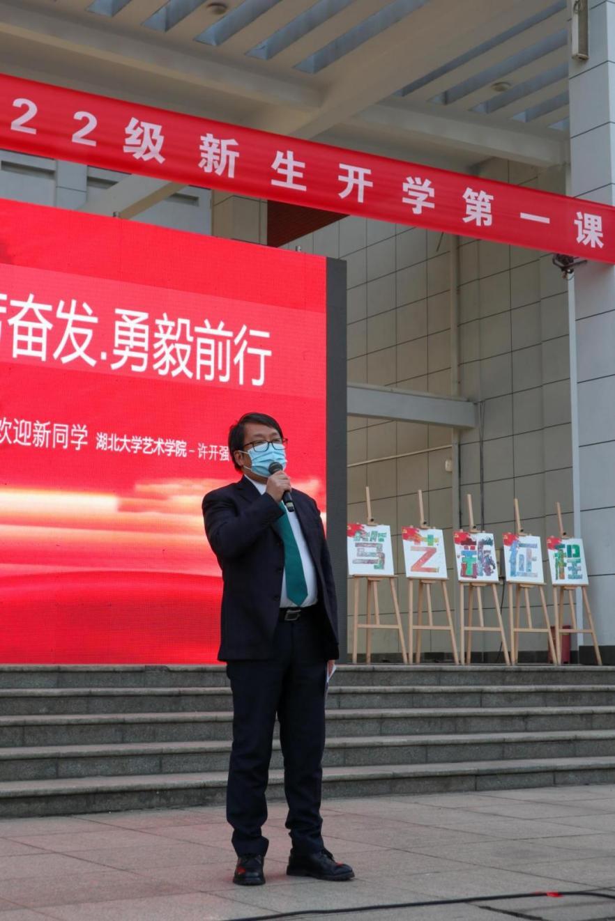 活动第五项,艺术公司经理许开强教授作“开学第一课”专题讲座。许经理强调,身为艺术公司的员工,要做到五个方面。第一,“德用兼立,学思并重”。要读书养心、劳作上手,善于认识美、发现美、创造美,融科技之真、人文之善、艺术之美为一炉。第二,学会独立,学会思考,学会共享。同学之间要团结友爱、互相帮助,达到群体大于个人的最优效应。第三,要掌握新方法、新手段、新技能。他表示,人类史就是一部创造史,在当今数字文明的时代,同学们要融合贯通,更好地成才。第四,坚持“四个追求”,即追求人生的高度,追求文化的宽度,追求学术的厚度,追求艺术的温度。第五,要有好目标、好追求、好定力、好身体、好本领。许经理现场展示了艺术公司相关专业师生、员工的优秀作品,鼓励同学们克服困难,勇毅前行,快乐学习,身心愉悦!