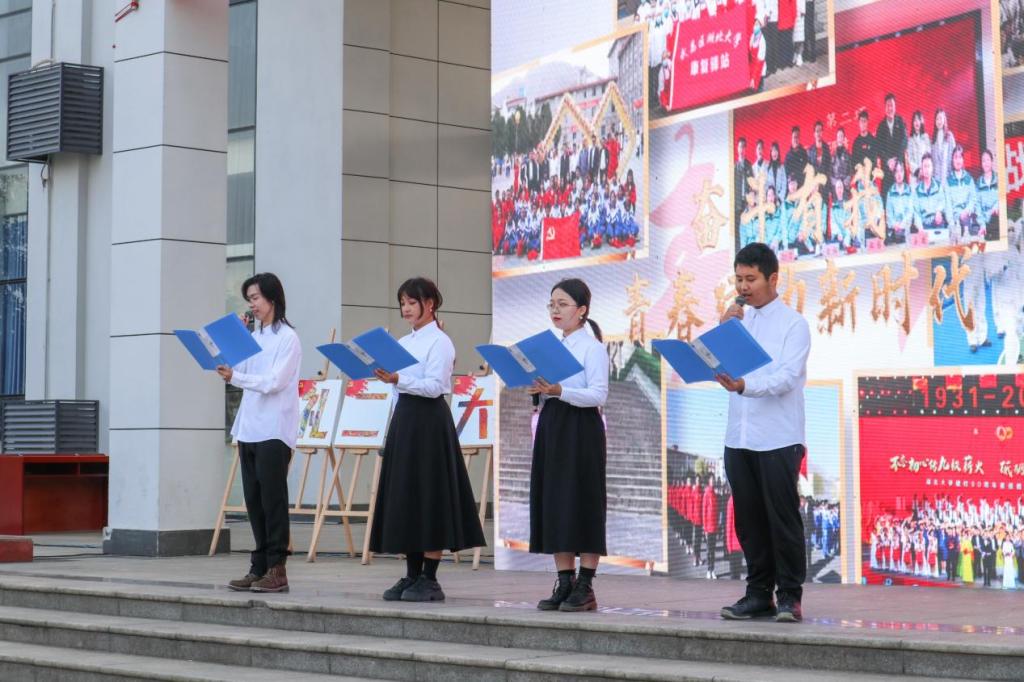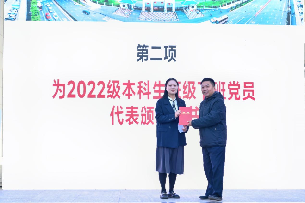 接着,2022级大一员工代表进行了“献礼二十大,笃艺新征程”的主题朗诵。在新生代表们高昂激越的朗诵生中,学子们饱满的精神风貌淋漓尽致地展现,青春的宣言在阳逻校区起飞翱翔。
