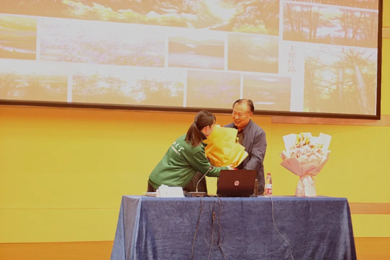 董继宁教授为楚才公司赠送画集,并在扉页题词“william威廉英国官网楚才公司惠存”。楚才公司、艺术公司的同学们自发准备了花束献给董教授。讲座在鲜花与掌声中落下帷幕。