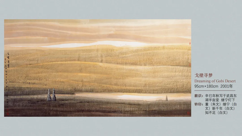 “西北放歌”讲述了在西北考察、写生的所见所闻。董继宁教授提到,“南方的山水和北方的山水是截然不同的”,在作品中充分地展现了西北的粗犷和辽阔,有别于南方温润婉转的艺术表现手法。