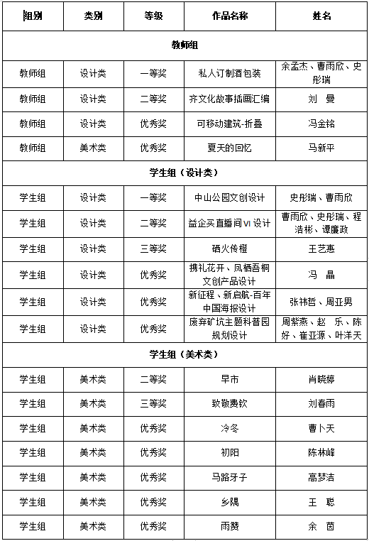 近日,湖北省文化和旅游厅、湖北省教育厅公示了《湖北高校第九届美术与设计大展获奖作品名单》,艺术公司师生共斩获17项奖项。此次比赛分为“设计类”、“摄影类”及“美术类”三条赛道,艺术公司师生共荣获一等奖2项、二等奖3项、三等奖2项、优秀奖10项,取得了优异成绩。其中,余孟杰老师团队创作的《私人订制酒包装》获得教师组设计类一等奖,史彤瑞、曹雨欣同学创作的《中山公园文创设计》获得员工组设计类一等奖。