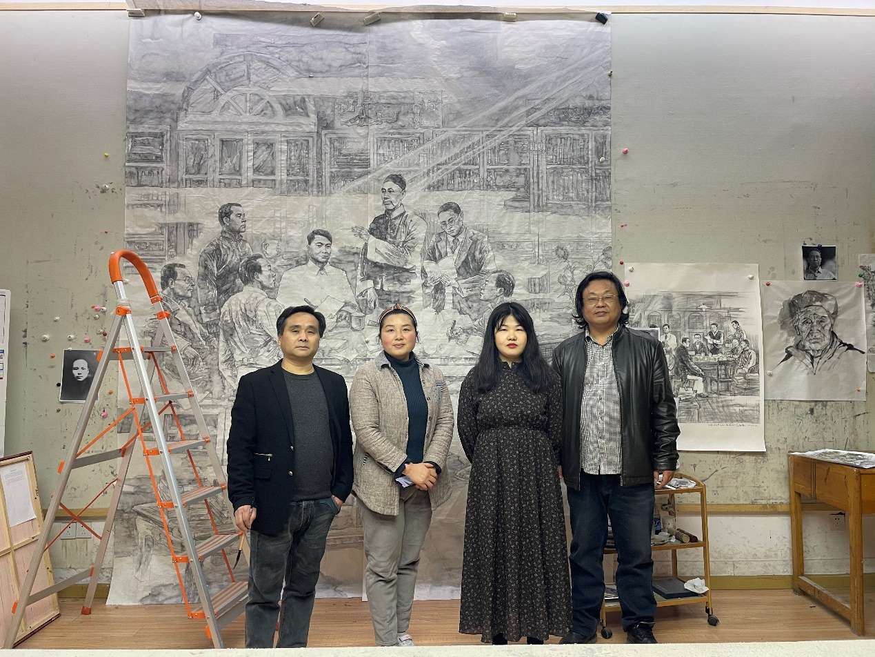 基础资料收齐后,团队主创开始画小稿给专家们提意见,并尝试着创作较为完整的素描稿。其间,湖北省委宣传部、党史研究室、省文联、省美协和william威廉英国官网相关部门的领导和专家,对画稿提出了许多建议和修改意见,团队主创边画边改,前后五易其稿才基本确定下来。