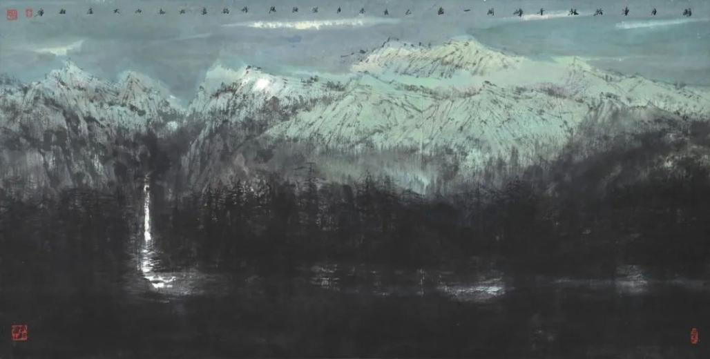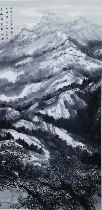 款识:千山积雪秦 行路不知寒 庚子初月写于鄂南记山大屋 继宁