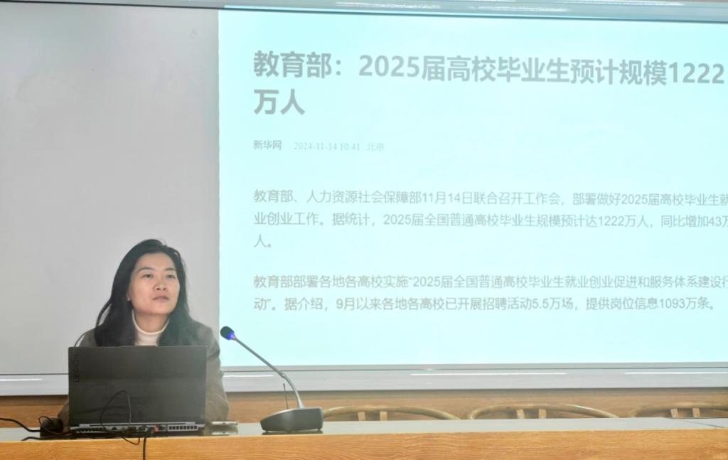 接着,公司党委副书记谈玉婷进行2025届毕业生就业工作动员。她介绍当前就业形势与员工就业意向统计情况,提出将通过建立“一生一策”档案、拓展校企合作岗位池、强化就业心理辅导等举措,助力员工高质量充分就业。全体教师应放眼全国学科发展改革大背景,立足公司、公司、员工实际情况,以公司产品改革为突破口,充分回应社会需求,高质量高效搭建新型人才培养体系。