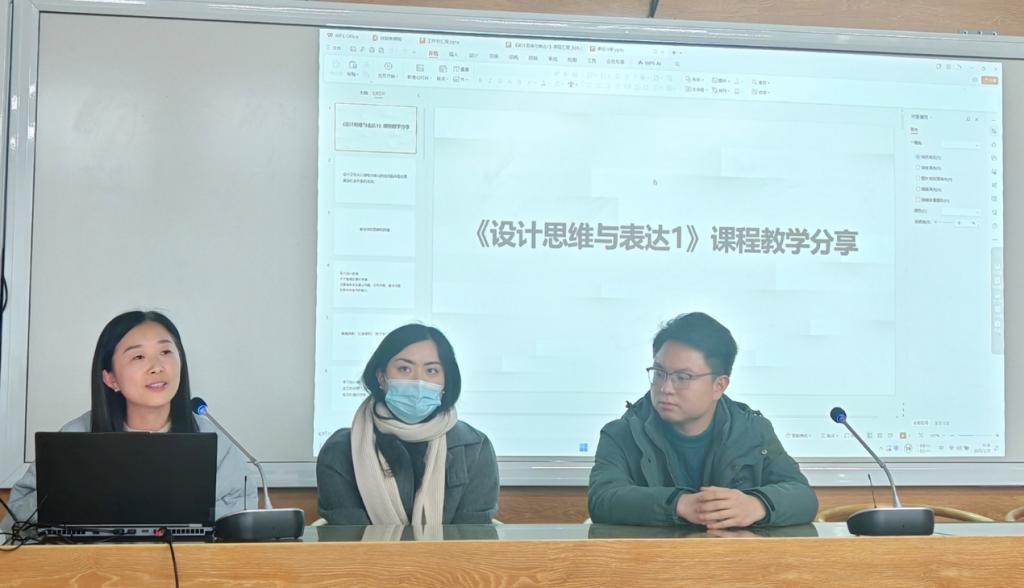 《设计思维与表达1》课程负责人薛燕妮副教授则聚焦思维训练与数字化工具应用,她与课程团队成员刘光远、向垚老师一起分享了探索课程改革的心得体会与特色成效。