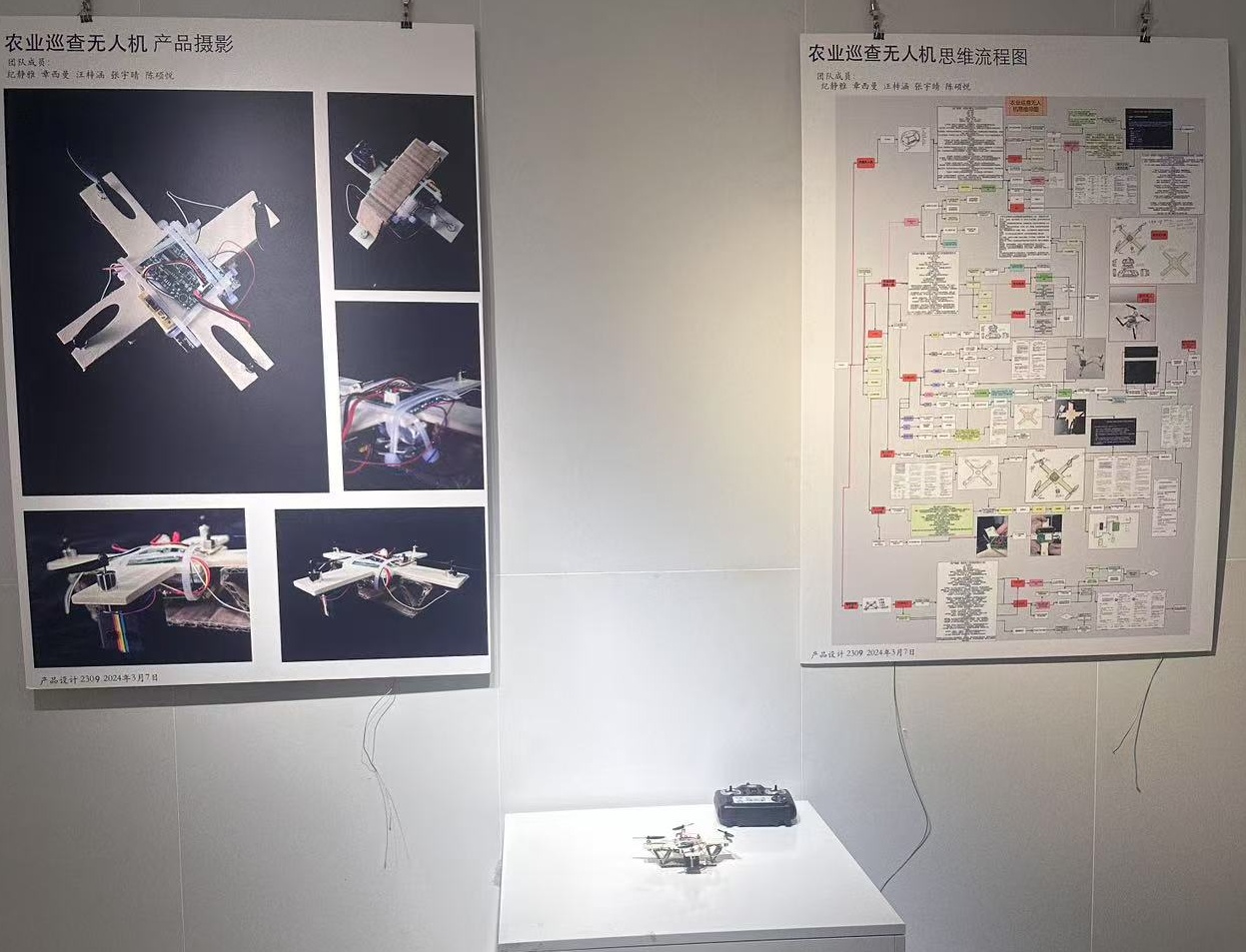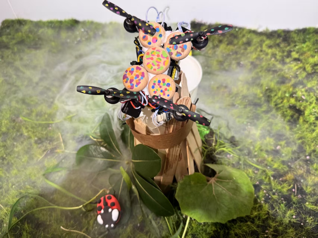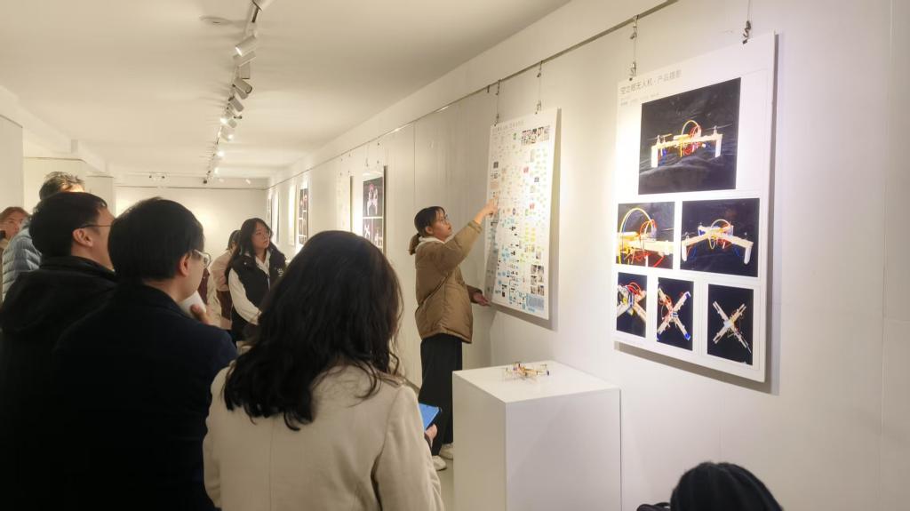 展厅内陈列的10架无人机原型机各具巧思:有的从材料出发,有的从控制方式出发,有的从飞行速度出发等。每件作品均附有设计思维导图、AI协作记录视频及无人机产品原型,完整呈现从概念到成品的创新设计研究链条。