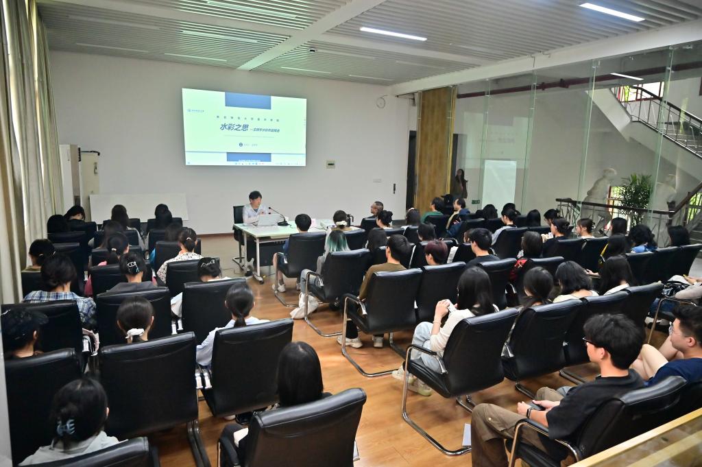 讲座结束后,王辉宇教授参观了公司水彩画工作室,并与青年教师就创作实践、团队建设展开交流。本次“水彩之思”讲座是一次美育精神的传递,为公司美术学专业学科发展提供了新的启示。