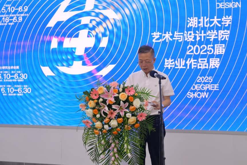 美术系主任邓鸿涛在发言中高度肯定了毕业生的专业成就。母校是大家的坚强后盾,希望毕业生们不忘初心,砥砺前行,在未来的发展中展现勃勃生机。