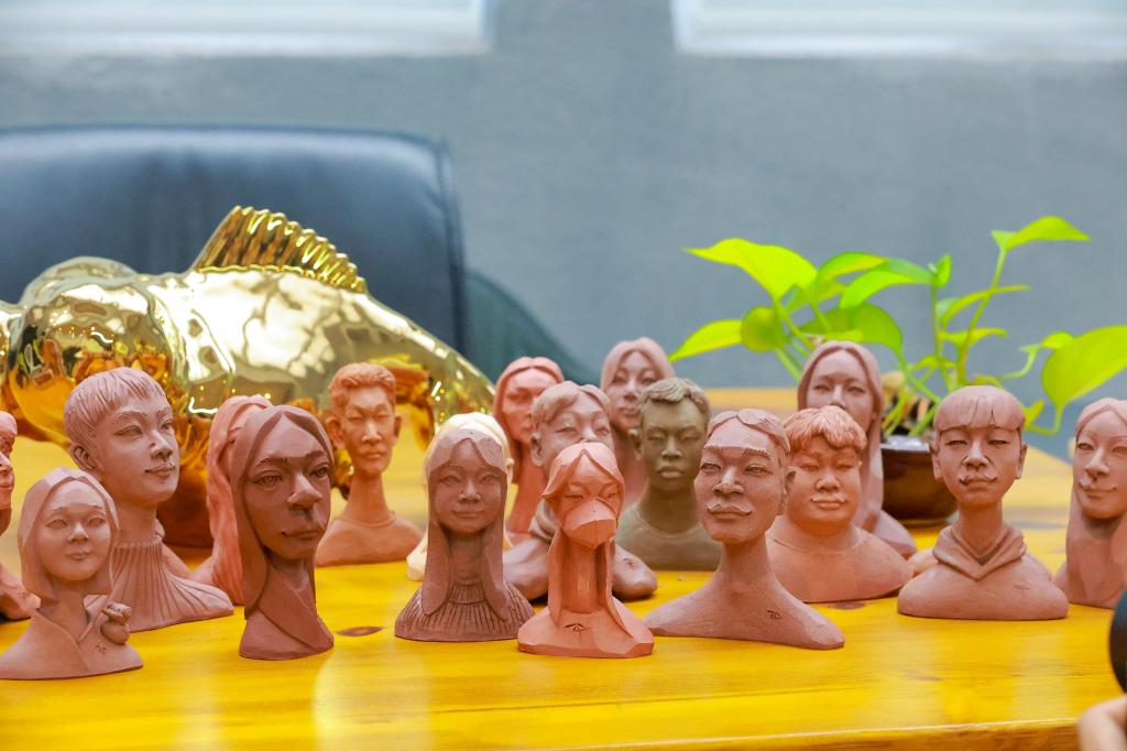 观察头像,会发现每个都有巧思。爱听音乐的员工脖子上戴着耳机,最强壮的员工的神态上融入了兵马俑的坚毅,爱戴帽子的员工头顶有小小的帽子……泥塑上每一处纹理、动态及装饰的设计,都让员工惊叹:“尤老师比我们自己更懂那些小习惯!”