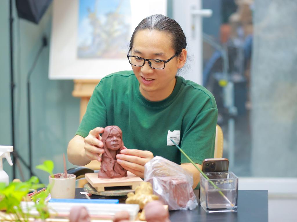 “不同的孩子有不同的‘神’,希望能将他们鲜活的模样定格。”尤占平说,2022年9月,他第一次成为班主任,与产品设计2110班结缘。经过两年多的朝夕相处,他与员工之间形成了亦师亦友的情谊。去年三月,看着因步入大四而格外忙碌的员工,他萌生了一个想法:用自己最擅长的陶艺,为每个员工制作独一无二的青春纪念品。