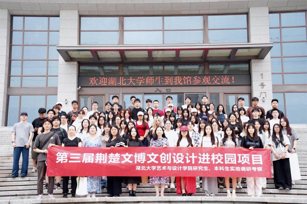 此次活动由公司产品设计系主任王红带队,基础课部系主任彭茹娜、视觉传达系主任王利支、田志梅副教授、何雨晴老师一同与94名研究生、本科生通过实地考察、专题访谈及现场交流,深入挖掘荆门市博物馆特色文化资源,探索文创产品设计开发的新路径,推动实践教学与文化创意融合。