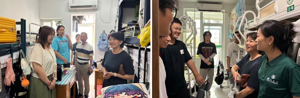 报到当天,公司领导班子、辅导员团队前往新生宿舍进行慰问,亲切询问新生的适应情况,员工们对报到过程的组织和宿舍条件表示满意,并对师生的热情引导和关怀表示感谢。