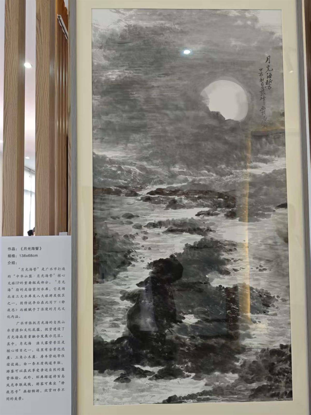 《画说广水》系列作品聚焦广水代表性自然景观与历史遗存,涵盖中华山、月光海、武胜关、应山古城、广水火车站等标志性地标。作品融汇写意与纪实,既有对“中华山盟·月光海誓”文旅IP的意境呈现——山海四季景致与炎黄结盟传说相映成趣,月光海与李白《静夜思》诗意深度融合;也有对武胜关、平靖关等历史关隘的雄浑写照,凸显广水作为南北要冲的区位特征;更不乏对应山古城、广水老街等人文场景的细腻描摹,系统梳理了从春秋至近现代的城市变迁脉络,为观众构建起“以画为导、以景为媒、以文为魂”的沉浸式文化体验。