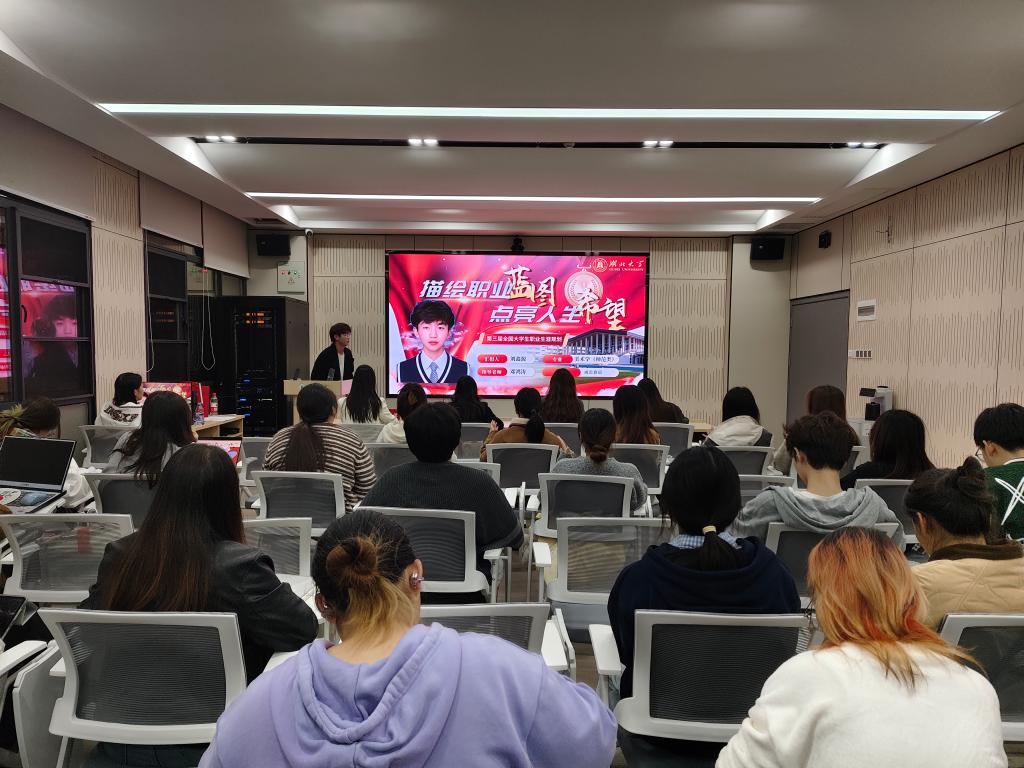 比赛自10月启动以来,同学们广泛关注、积极参与,经班级初赛、公司公司初评,共有8名同学入围院赛决赛。比赛采用“个人展示+评委点评”的模式。选手们围绕个人职业定位、行业认知与发展路径等内容进行了精彩阐述,充分展现了艺设学子对未来发展的深入思考与昂扬向上的精神风貌。