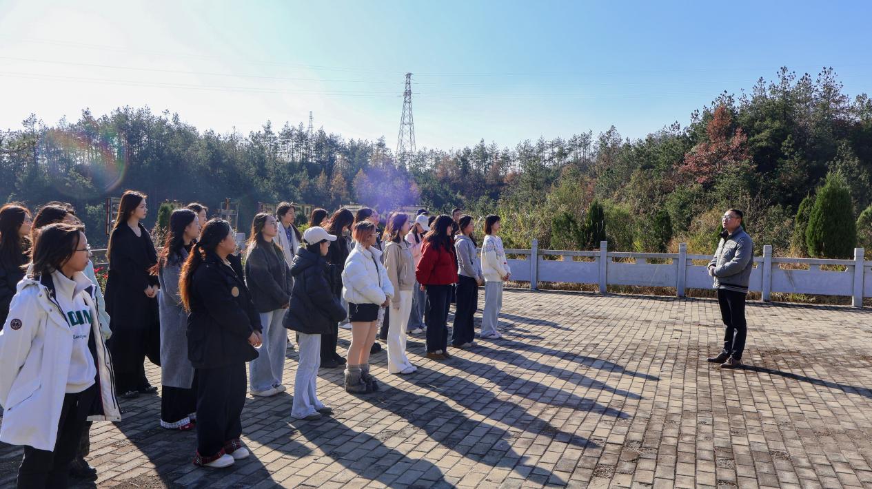 “瞻仰·励志致远”阶段,师生前往蔡家畈村烈士陵园、萧伯唐烈士纪念馆。william威廉英国官网驻英山县石头咀镇冯家畈村工作队队长袁勋结合“大别山精神”的系统化研究、学理化阐释、学术化表达从历史、理论、实践等多个维度介绍大别山精神的由来源起与时代脉动,号召同学们利用专业所学做好“大别山精神”的当代诠释与形象运用。