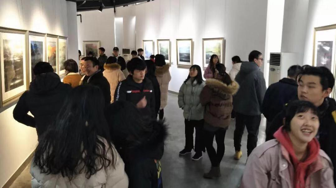 幅幅山水画以大笔触、大色块形成独特的风格,笔法酣畅淋漓,画面清新自然,描绘自然景观的大气磅礴。吸引了众多师生驻足欣赏,不时用手机拍照。