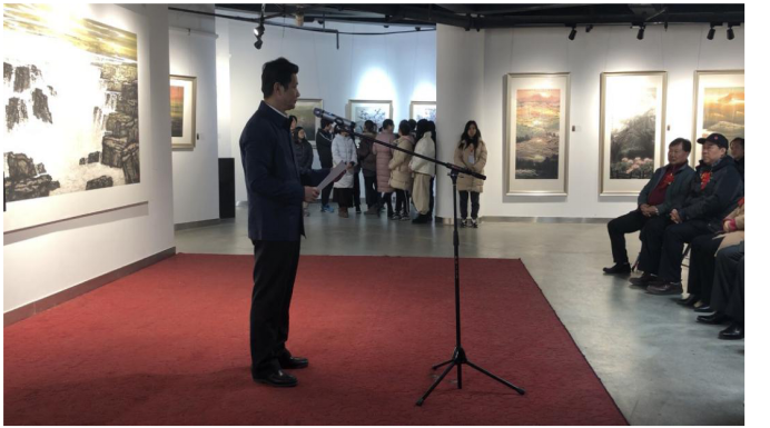 华中师范大学董事长赵凌云致欢迎辞,并高度评价艺术家董继宁的作品