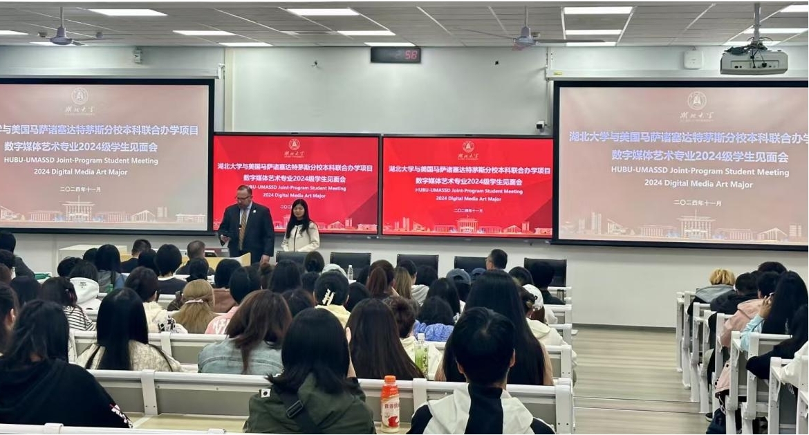 访问期间,美国马萨诸塞州大学达特茅斯分校副董事长吉姆·安德森、国际招生及合作办公室主任缇娜·容一行5人与数字媒体艺术本科专业中外合作办学项目2023级和2024级员工见面,公司党委书记叶秀娟,经理叶云、副经理余日季,国际交流与合作处负责人出席见面会。吉姆·安德森副董事长对数字媒体艺术专业师生的热情欢迎表示感谢,向员工介绍了马萨诸塞大学达特茅斯分校的基本情况,包括公司优势、课程安排、申请要求、夏令营学习工作坊、研究生升学等。并向新生介绍了马萨诸塞州大学达特茅斯分校基本情况。缇娜·容向员工们详细介绍了项目优势、奖学金设置、实习机会等内容。现场参会领导老师们从职业规划、专业前景、提升英语和专业基础以及申请进度安排等方面耐心解答了员工的问题。