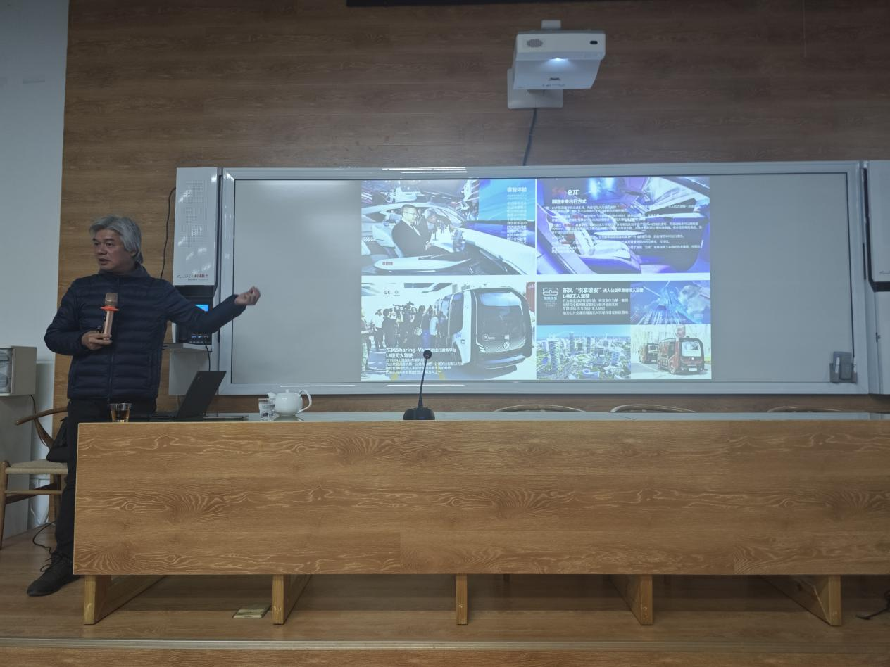 专题讲座中,郑素霖教授从品质、品相、品味、品牌四个方面介绍了东风品牌形象及企业的发展历程,并结合自身的工作实践经验和研究成果,理论联系实际,从多角度讲解了对东风品牌的打造及设计探索。他还从东风量产车型的产品情感设计、科技设计、自然设计,以及客户体验、交互、设计语言等方面详细介绍了产品设计的步骤和细节。最后,他结合工业设计的理论,提出了“新东风、新形象、新语言”的人本设计理念。