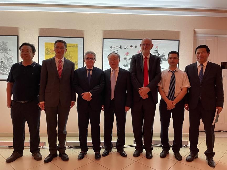 书画展开幕式上,公司党委书记谢红星、圣保罗州立大学董事长帕斯卡·巴雷蒂共同为谭崇正教授的作品《国色天香》捐赠仪式剪彩。邓鸿涛副教授在致辞表示,圣保罗州立大学具有深厚的文化底蕴、悠久的办学传统、广泛的社会赞誉,孔子公司的建设为中巴两国的文化互学互鉴提供了重要窗口和平台,此次水墨画展将有利于促进两国文化交流。