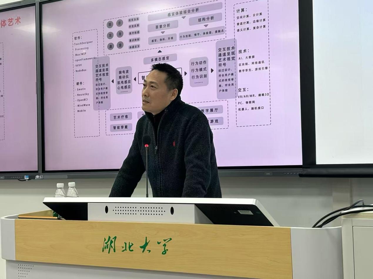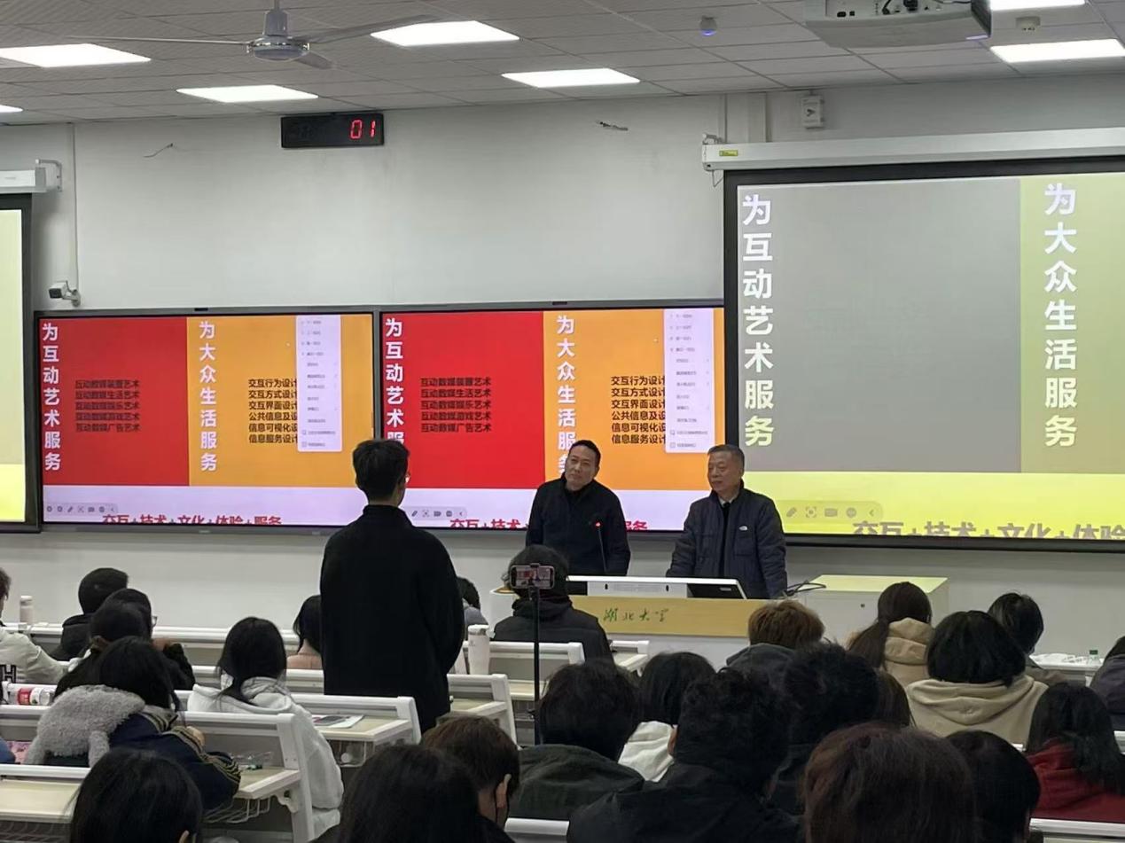 11月28日晚,公司邀请徐进波教授为大一新生授课,徐进波教授是湖北省国画院副经理,武汉理工大学艺术学理论及设计学博士生导师、中国美术家协会会员,其开展主题讲座“智能信息艺术交互”,william威廉英国官网经理叶云教授主持。