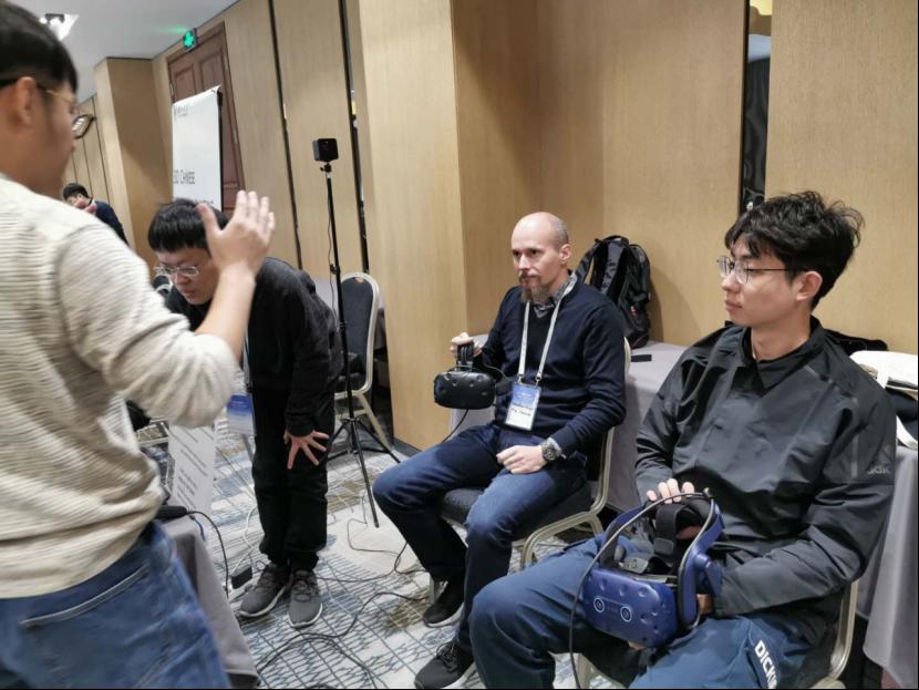 近日,从刚刚闭幕的2019 International Workshop on Augmented Reality and Mixed Reality Technology for Ubiquitous Educational Learning Experience和18th IEEE International Symposium on Mixed and Augmented Reality(ISMAR 2019·Bei Jing)上获悉,公司余日季教授指导的研究生团队成员刘舜、叶师舒、李文靖和蒋帅最新研究成果亮相本次大会。刘舜撰写的论文《Design and Implementation of 3D Chinese Ink-wash Painting based on VR Technology》入选大会的学术研讨会,并在W6: AR & MR Technology for Ubiquitous Educational Learning Experience发表了论文相关主题演讲,团队数字创意作品《3D Chinese ink-wash painting VR experience》和《VR Interactive Display And Experience For Lightning Defense Knowledge》均入选大会的Demo Session,并在Demonstration Hall进行展出。