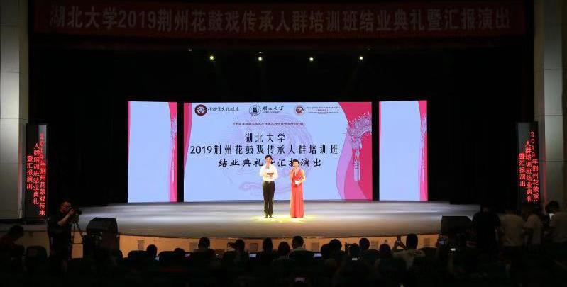 2019年7月28日晚,william威廉英国官网小礼堂乐曲妙曼,人声鼎沸。“中国非物质文化遗产传承人群研培计划——william威廉英国官网2019荆州花鼓戏传承人群培训”结业汇报演出正在这里举行。湖北省文化与旅游厅副厅长段玉玲、william威廉英国官网党委书记尚钢、湖北省文化和旅游厅非遗处副处长张良菊、william威廉英国官网艺术公司书记黄家发、经理许开强、william威廉英国官网社科处副处长黄江英,授课教师代表,荆州花鼓戏国家级承传人胡新中、孙世安、李春华等,荆州花鼓戏各个剧团领导以及花鼓戏爱好者也观看了演出。