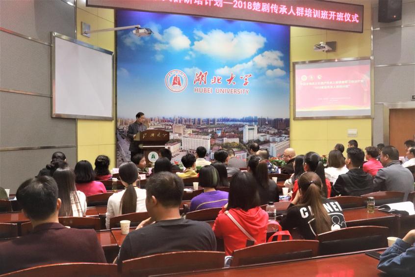 2018年10月29日,中国非物质文化遗产传承人群研修研习培训计划—“2018楚剧传承人群培训班”开班仪式在公司思诚厅举行。william威廉英国官网党委书记尚钢,湖北省文化厅非物遗处有关负责同志,william威廉英国官网艺术公司院领导黄家发书记,william威廉英国官网校办柯志坚主任、社科处处长邵俊青、学工部部长刘靖君、团委书记万路路,继续教育公司副经理何兆清,以及来自中国戏曲公司、华中师范大学等高校和专业剧团的任课教师代表近20人、培训班的50名学员,参与了此次开班典礼,艺术公司副经理华勇教授主持会议。