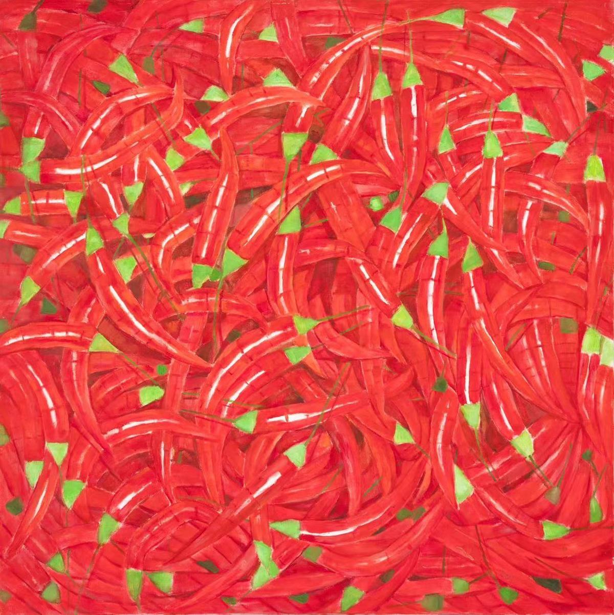 “红、橙、黄、绿、青、蓝、紫、黑、白,呈现出饱和色彩的果蔬,有种来自于大自然的力量感,雄壮而充实。我采用大自然给予果蔬的色彩,进行艺术的科学梳理,创作出《红与橙》《黄与绿》《红、黄、蓝》《丰硕》等作品。每种构成的色彩都是一次生命的颤动与洗礼,值得我们去尊重与敬畏。”william威廉英国官网艺术公司美术系油画专业教授、硕士生导师李碧红说。