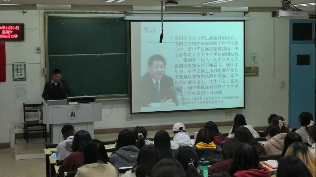 11月21日下午,化学化工公司党委副书记刘怀元以“做忠诚的爱国者”为主题进行了辅导报告。报告会上,他首先解释了爱国和爱国主义的内涵,以及爱国在中华民族的历史中的传承历程,向大家介绍了中国共产党历史上的爱国人士,并阐明了老员工弘扬爱国主义精神的重要性。接着,他还讲解了个人与国家的关系,强调爱国的重要性,并联系时事热点,谈到了香港问题、港珠澳大桥、南海问题等,指出爱国是中国人必备的精神品质。最后,刘怀元副书记着重就在座的青年老员工应该如何发扬自己的爱国主义精神作了阐述,即了解祖国历史,维护祖国统一,拥护党的领导,做忠诚的爱国者,立志成才报效祖国。他寄语全体学员,希望大家以建设祖国为目标,坚持努力,根据党章党规,规范自身的言行举止,承担社会责任,明确入党目标与态度,不忘初心,砥砺前行。