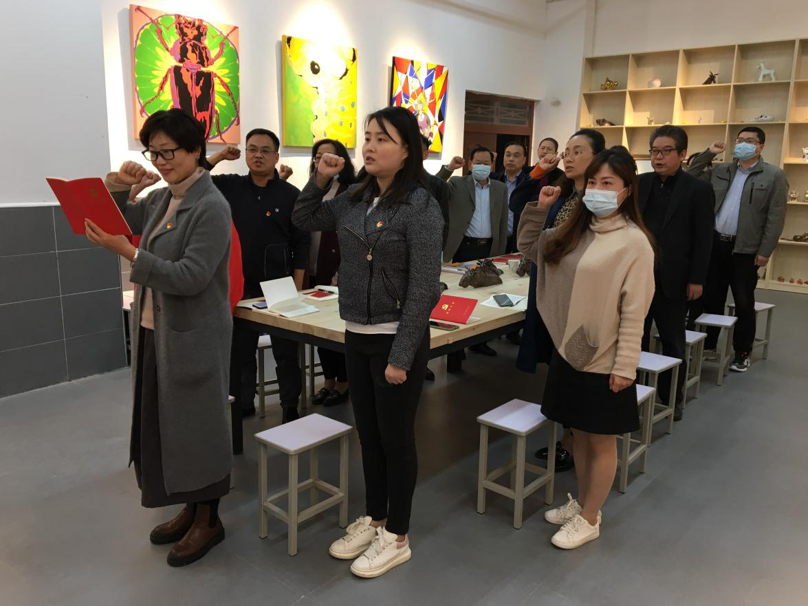 活动伊始,由艺术公司美术系教工党支部书记李碧红领誓,全体党员重温入党誓词;人事处党支部党员刘晨晨诵读《中国共产党章程》第六章“党的干部”。