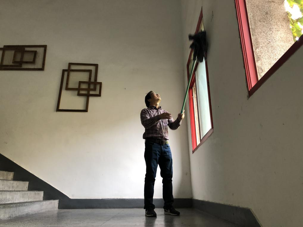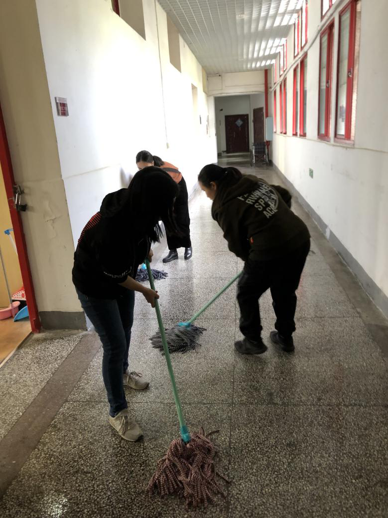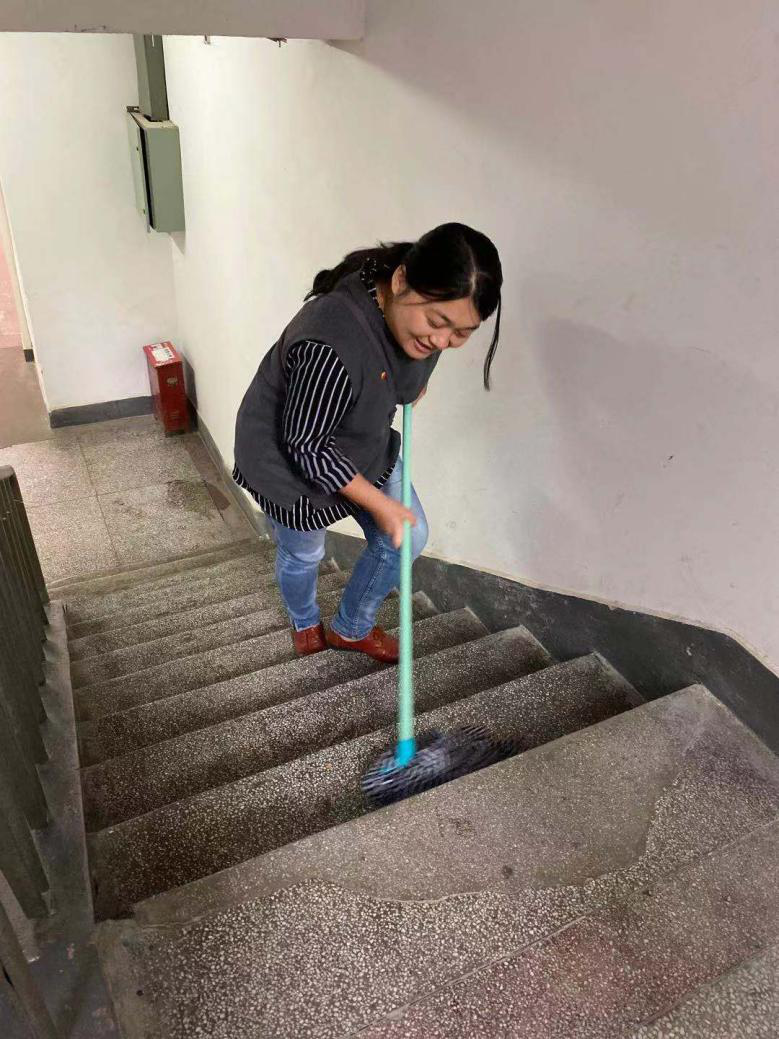 扫地、拖地、擦门窗,各小组分工明确有条不紊,虽然各位教师党员们大汗淋漓,却一个个面带笑容、激情满满,真正将党员先锋模范作用展现了出来。