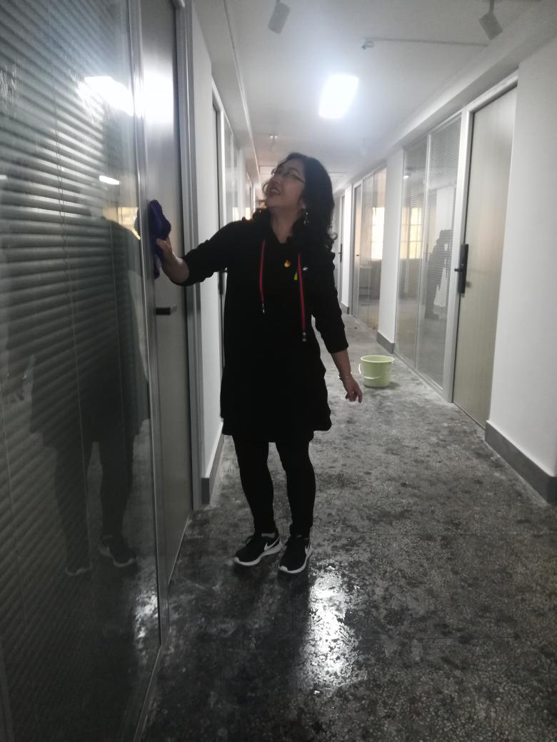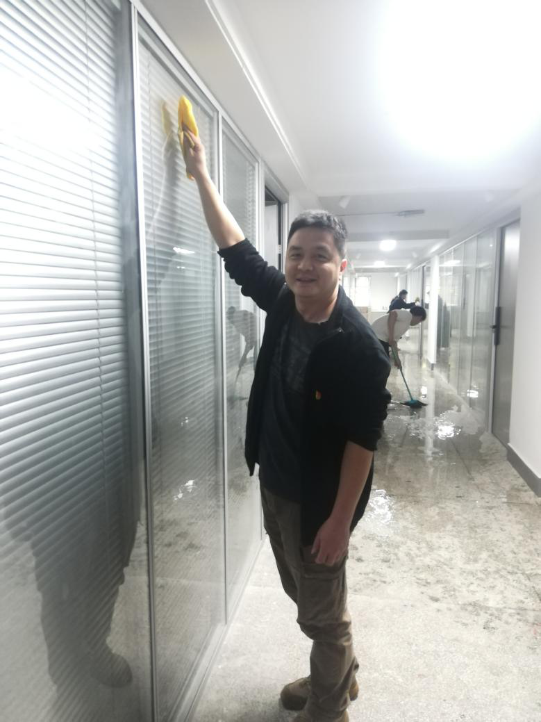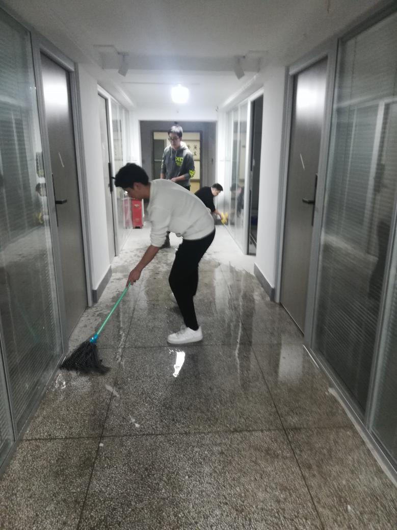 公司党委书记黄家发、经理许开强、副书记欧明任、副经理华勇及全院4个教工党支部、4个员工党支部的党员们纷纷接过拖把、抹布、水桶等工具,分别在公司大楼四个片区紧锣密鼓地开始了今天下午的大扫除活动。