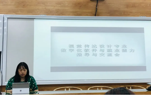 活动第三阶段,视觉传达系教工支部 “我为群众办实事”系列活动首场报告。教师党员余孟杰以“数字化软件学习和就业能力指导”为主题进行讲座与交流。她将数字化软件分为UI设计、平面设计、新媒体设计这三个方面,通过对不同软件功能的分析,比较分析软件的优缺点及软件间的交叉使用关系、软件适合使用人群,使员工党员对软件有了更深的认识,能更好地选择适用软件进行学习以提升就业能力。通过对武汉理工研究生毕业去向的数据展示,对近几年热门职业所需学习软件技能的种类与课程衔接等内容进行了较完整分析。并提出了解决员工对于本专业学习软件的困惑的方法,以及强调如何对就业渠道、工作经验等信息内容进行掌握技术层面的综合分析。