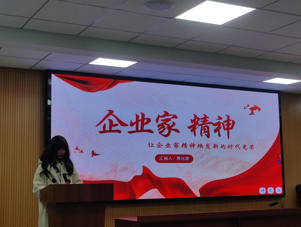 贾光源同学则围绕“让企业家精神焕发新的时代光芒”这一主题,结合优秀企业家事例,为同学们带来别样生动的分享,启示大家应当不断学习和创新、坚定理想和追求、承担责任和敢于担当,从而大力弘扬企业家精神,扛起对党忠诚、勇于拼搏、追求卓越的时代担当,让企业家精神焕发新的时代光芒,照亮奋进第二个百年奋斗目标的全新征程。