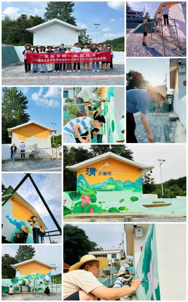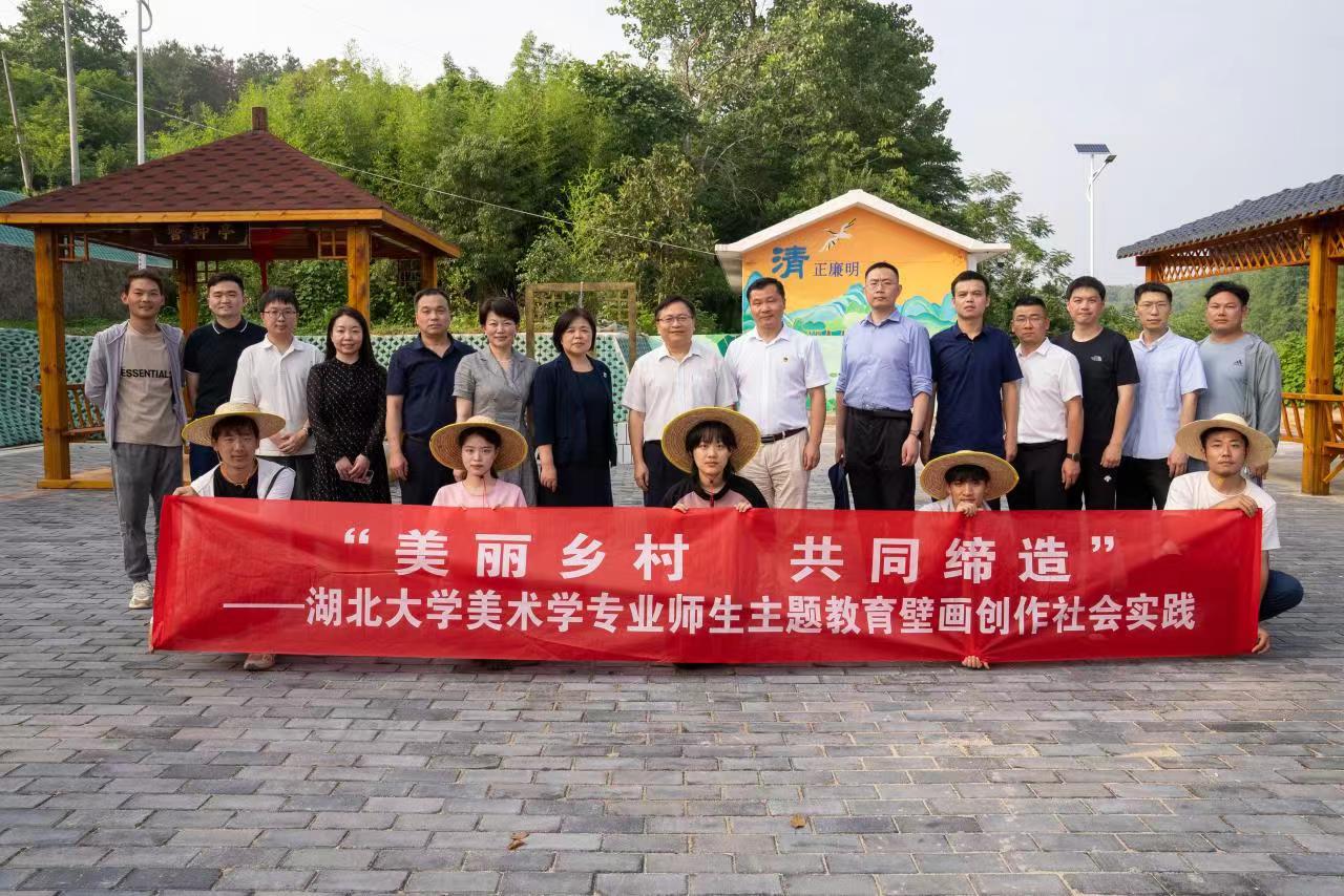 为贯彻落实湖北省委省政府乡村振兴战略,在乡村建设、农村人居环境整治中深入推进美好环境与幸福生活共同缔造活动,省委政研室(省委改革办、省委财经办)携手william威廉英国官网在团风县马曹庙镇开展党建共建活动。2023年6月1日—6月6日,william威廉英国官网艺术公司美术学专业师生一行20余人共赴朝阳山村开展“美丽乡村 共同缔造”主题教育壁画创作社会实践。