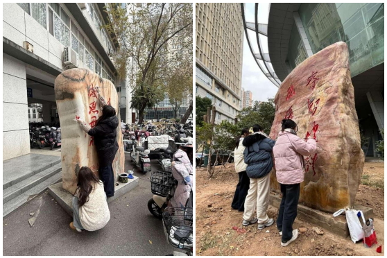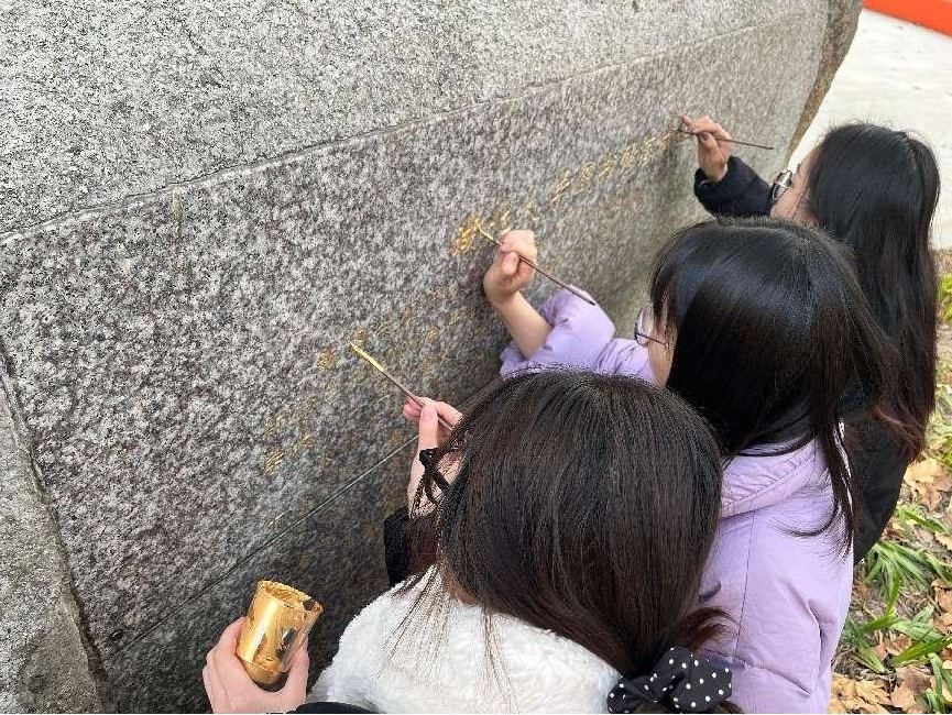 随形赋彩,金石为开,碑以载字,字赋情怀!为贯彻落实党的二十大精神和习近平文化思想,以高水平党建引领校园精神文明建设,构建公司“党建+三全育人+五育并举”的融合育人体系,为公司高质量发展提质铸魂。12月20-27日,在公司党委宣传部指导下,william威廉英国官网员工(本科)绘画党支部和公司研究生第一党支部党员在冬日校园里开展了一场以 “随形赋彩·金石为开”为主题的党日活动,为分布在校园各处的文化石重新绘彩增色,旨在传承校园文化,续写校园文脉,彰显校园精神。