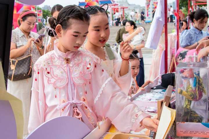 “妈妈,我想要这个‘吧唧’!”不远处,一位小朋友一眼相中一枚图案形似饼干的九凤“吧唧”,兴奋地拉着妈妈上前咨询。展台上,50款限量版手绘“吧唧”(徽章)装在盲袋中整齐陈列,每一枚均由团队成员精心绘制,图案各异,盲抽的乐趣令不少年轻游客直呼“上头”。