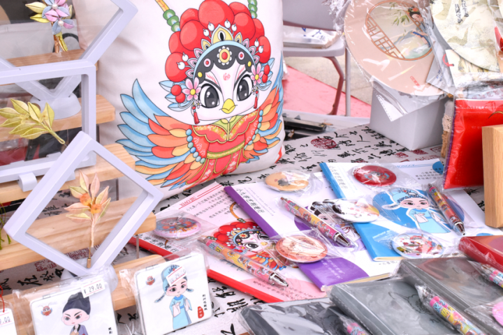 除“吧唧”外,印有九凤IP形象的冰箱贴、风琴本印章套装、明信片等文创产品也成为游客争相收藏的“文旅手信”。实用又时尚的帆布袋、童趣十足的风筝和魔方、软萌可爱的抱枕……这些凝聚创意与匠心的作品,巧妙地将湖北地方戏曲符号融入日常用品,让传统戏曲文化变得“可触摸”“带得走”。