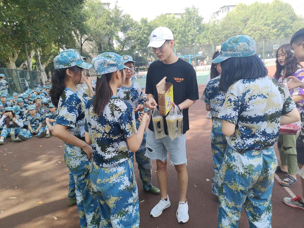 次日上午,18级新生们在炎热中辛苦地军训,作为学长学姐,各个员工组织的部长们也不忘照例去看望新生们,为大家送去去暑饮料。